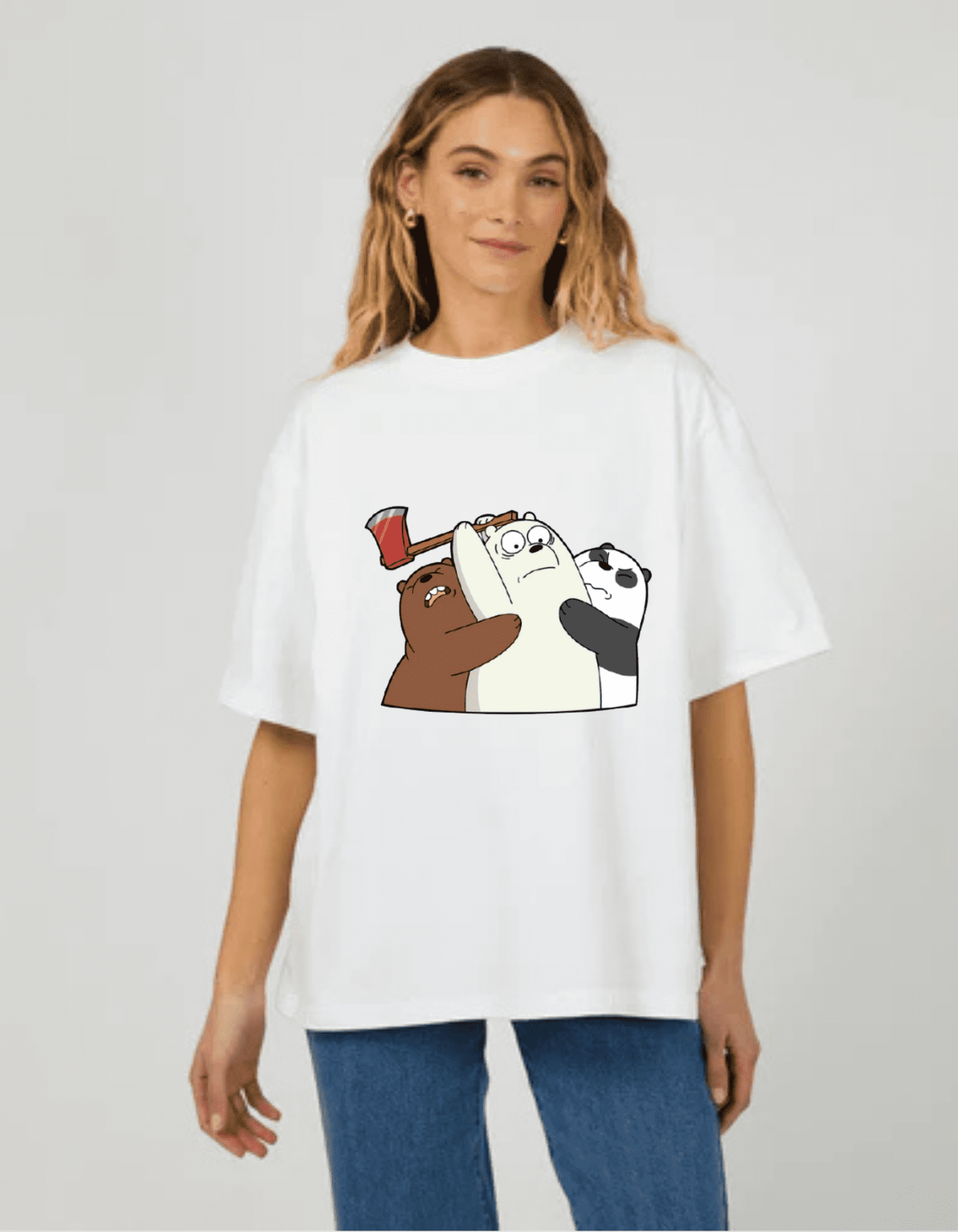 Home Women's Printed Oversized T-shirts Bear Buddies