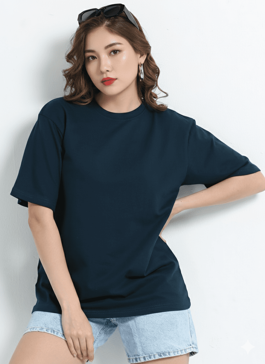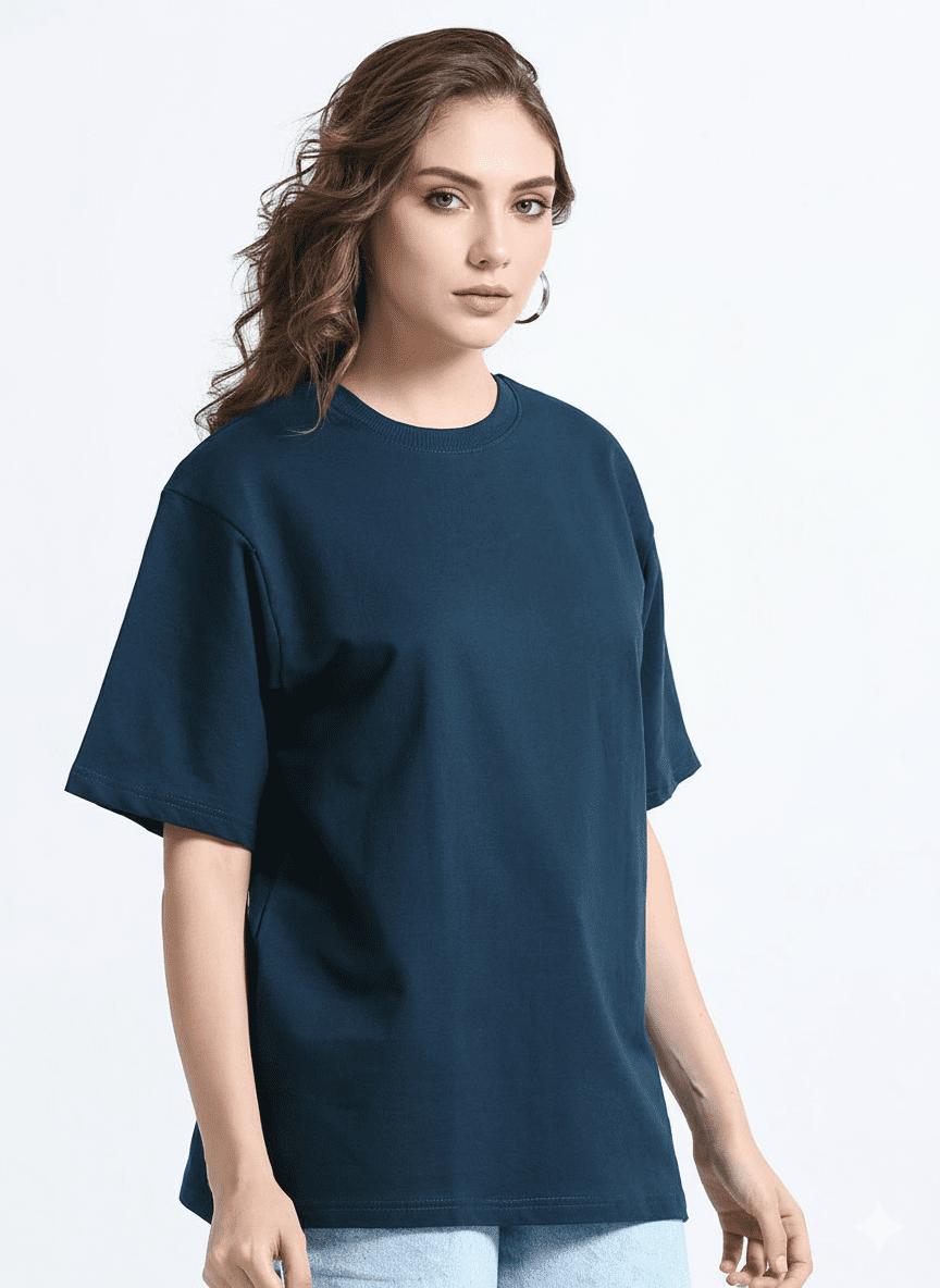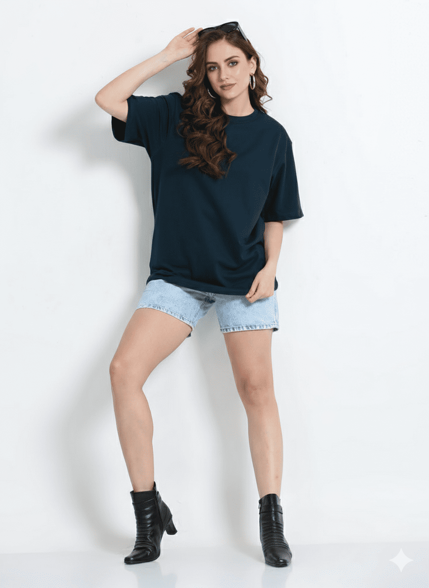 The Trendy Soul Women’s Oversized Fit T-Shirt – Solid Dark Blue